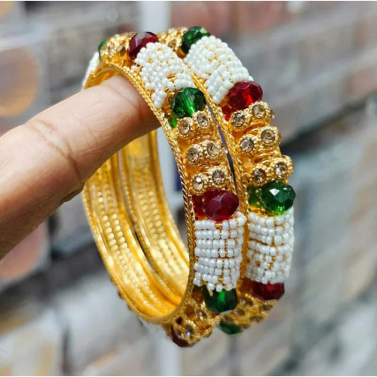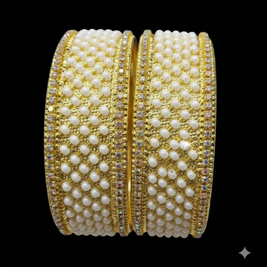 63% DiscountRoyal Gold-Tone Pearl & Stone Studded Bridal Bangles
