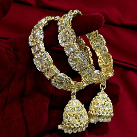 Traditional Gold-Tone Kada Bangles with Jhumka Charms