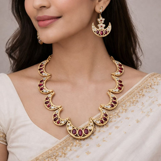Traditional Gold-Tone Crescent Motif Necklace & Earring Set